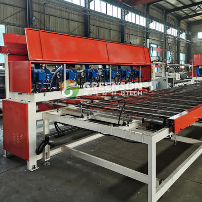 تقوم آلة تصفيح ألواح الجبس هذه بتصفيح الألياف الزجاجية والورق وأغشية PVC ورقائق الألومنيوم على ألواح الجبس لإنشاء منتجات نهائية لبلاط السقف وألواح الجدران الفاصلة.